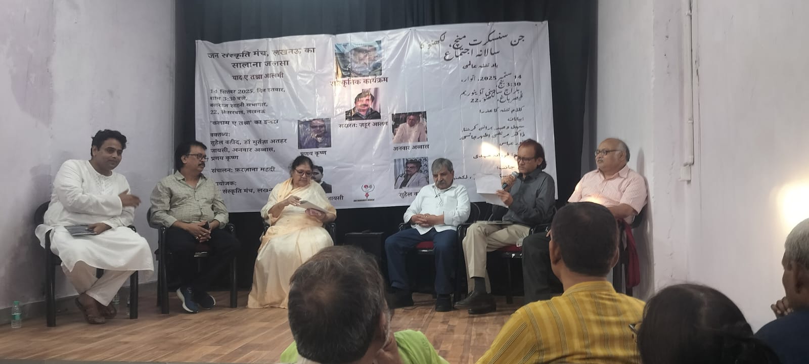 कार्यक्रम का आगाज जसम लखनऊ के सचिव और कहानीकार फरजाना महदी ने तश्ना जी के शेर ‘हटो कांधे से आंसू पोंछ डालो वो देखो रेलगाड़ी आ रही है/ मैं तुमको छोड़कर हरगिज न जाता मुझको गरीबी लेकर जा रही है’ से किया। तस्वीर नकवी ने सबीहा खान का वह खुला खत पढ़ा जिसे उन्होंने जेल में अपने बेटे उमर खालिद से हालिया मुलाकात के बाद लिखा था। एक मां के दुख और साहस ने सभी की आंखें नम कर दीं। आइसा से जुड़े छात्रों शांतम निधि और सुचित माथुर द्वारा प्रस्तुत गीत से कार्यक्रम का समापन हुआ।
