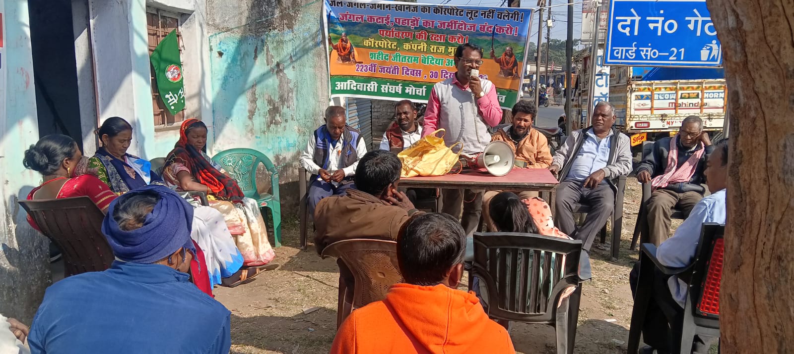 इसी दिन चपरी–बुमरी मैदान में आदिवासी संघर्ष मोर्चा के बैनर तले सैकड़ों आदिवासी एकत्रित हुए। यहां शहीद जीतराम बेदिया की तस्वीर पर माल्यार्पण कर नारेबाजी के साथ संकल्प सभा आयोजित की गई।