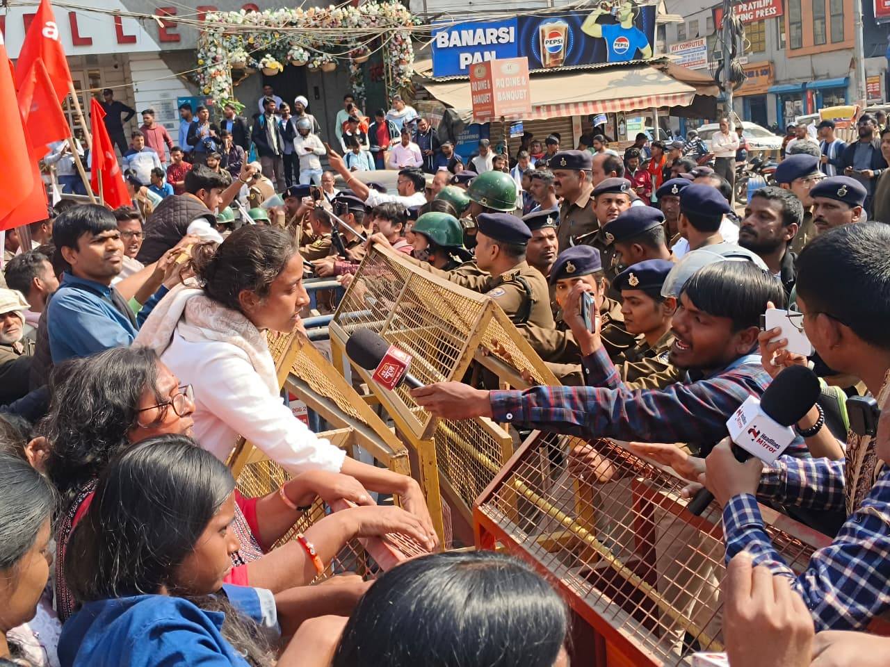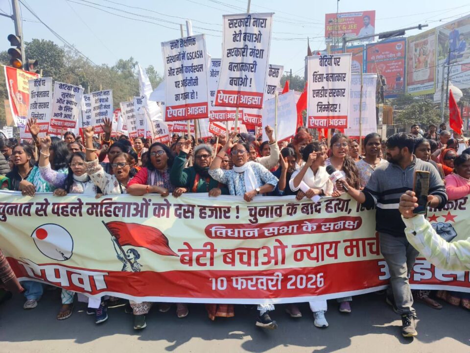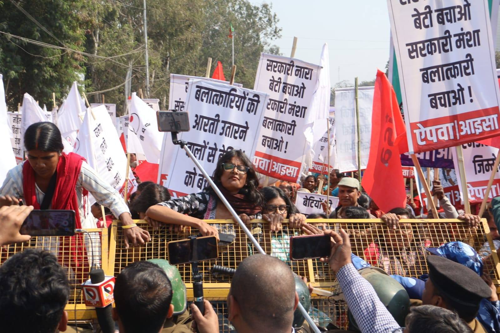 पटना। बिहार में छात्राओं और महिलाओं पर बढ़ती यौन हिंसा, बलात्कार तथा नीट छात्रा मामले सहित महिला उत्पीड़न के मामलों में न्याय सुनिश्चित करने की मांग को लेकर आइसा–ऐपवा ने 10 फरवरी को पटना में विधानसभा मार्च किया। गांधी मैदान के गेट नंबर 10 से दोपहर 12 बजे निकला यह मार्च जेपी गोलंबर पर पहुँचते ही पुलिस द्वारा लगाए गए भारी बैरिकेड के कारण रोक दिया गया। पुलिस ने प्रदर्शनकारियों पर बल प्रयोग किया जिसमें महिलाओं समेत दर्जनों लोग घायल हुए।