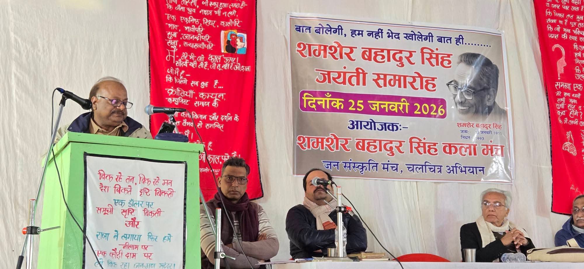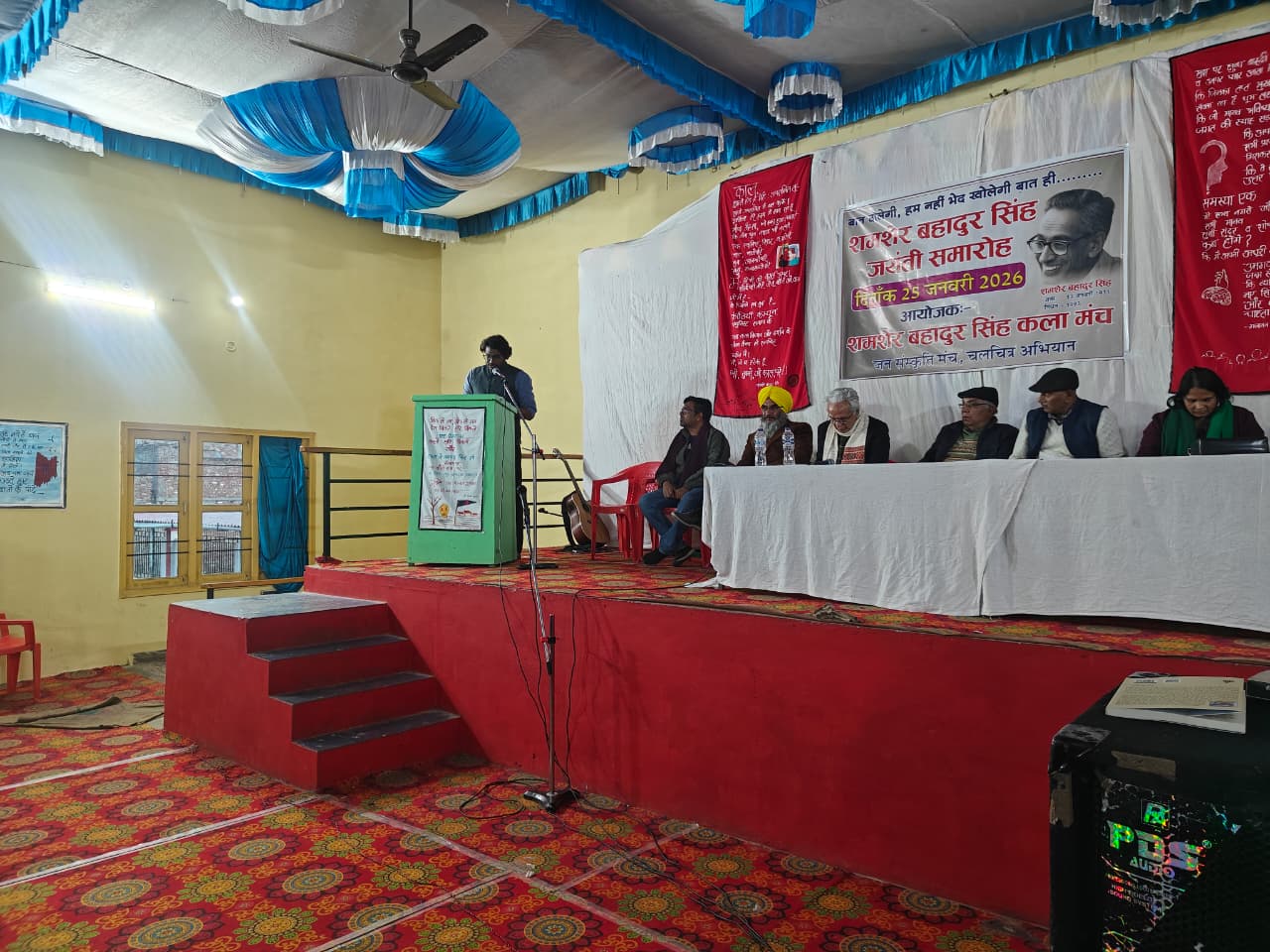 वरिष्ठ संस्कृति कर्मी अनुवादक और संगठनकर्ता दिगंबर ने शमशेर बहादुर सिंह की कविताओं का किसानों–मजदूरों के जीवन और सपने के साथ जोड़ते हुए बातचीत रखी। वह मेहनतकशों के सच्चे कवि थे। आज मुजफ्फरनगरी कवि शमशेर की कविताओं को आवाम के बीच ले जाने की जरूरत है।