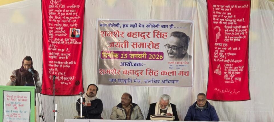 प्रगतिशील कविता के सबसे अनोखे और प्रयोगधर्मी कवि शमशेर बहादुर सिंह के पैतृक गाँव कस्बा एलम जिला शामली में 2023 से ‘शमशेर बहादुर कला मंच’ ‘जन संस्कृति मंच व चलचित्र अभियान’ के साझे प्रयास से शमशेर जयंती समारोह का आयोजन किया जा रहा है। इस बार यह आयोजन 25 जनवरी को ऐलम कस्बे के ऐलम ग्रीन मैरेज हॉल में संपन्न हुआ। शमशेर जी का जन्मदिवस 12 जनवरी को होता है, दिल्ली पुस्तक मेले की व्यस्तताओं के कारण यह आयोजन 25 जनवरी को रखा गया।