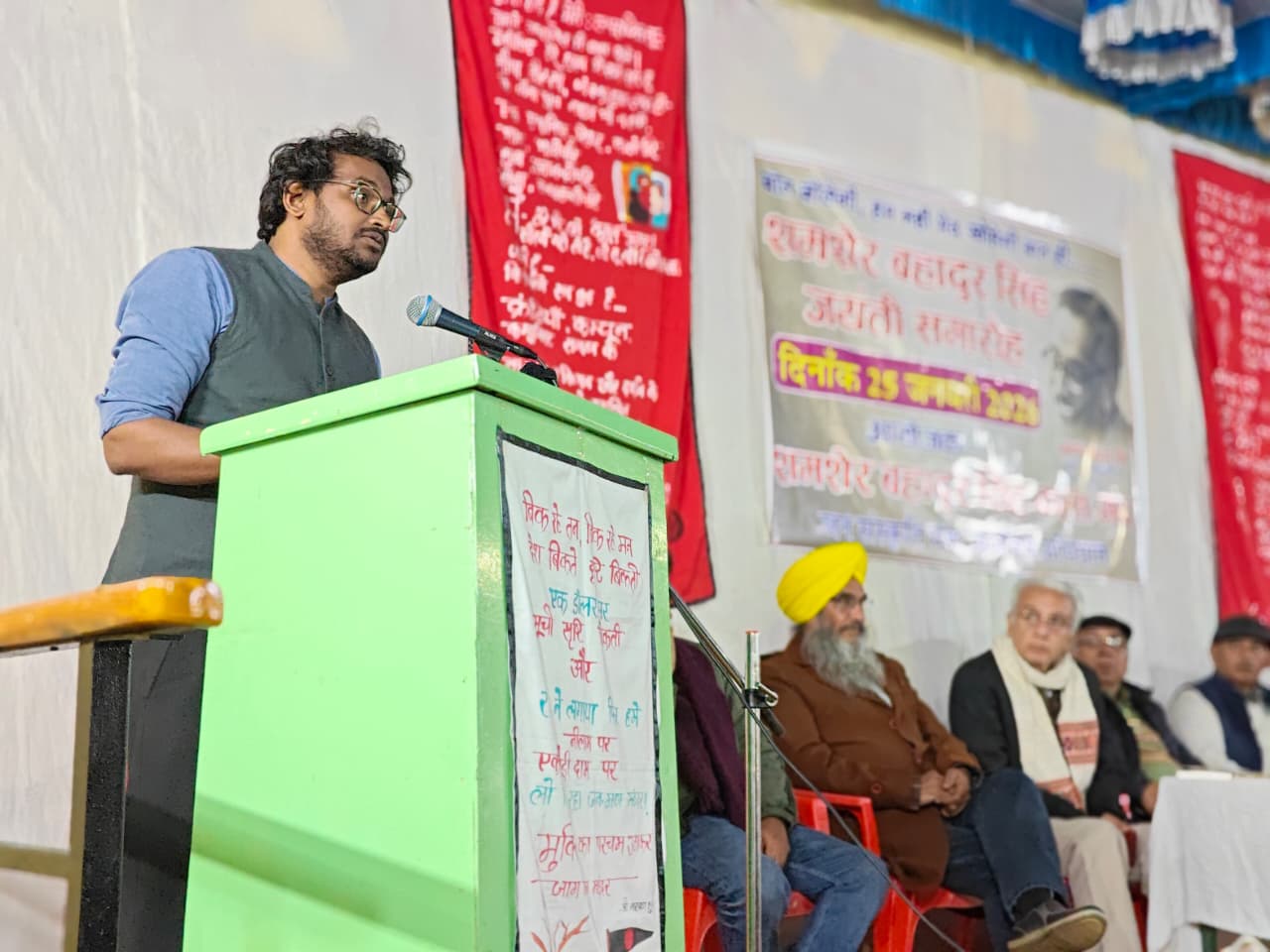 वरिष्ठ आलोचक, ‘आलोचना’ पत्रिका के संपादक और दिल्ली विश्वविद्यालय के प्रोफेसर आशुतोष कुमार ने शमशेर बहादुर सिंह के व्यक्तित्व, उनकी किसानी पृष्ठभूमि और जीवन संघर्ष की चर्चा की और बताया कि इनकी रोशनी में शमशेर की कविताओं को समझना आसान है। उन्होंने कहा किशमशेर बहादुर सिंह के सामने अब तक की हिंदी आलोचना असहाय दिखाई देती है। उन्हें सौंदर्य का कवि कहा गया, लेकिन उनके सौंदर्य बोध की व्याख्या करना कठिन साबित हुआ है। यह कठिनाई इस कारण है कि हिंदी आलोचना का उस किसानी संवेदना और सौंदर्यबोध से प्रगाढ़ परिचय नहीं है, जो शमशेर की कविताओं की असली जमीन है।