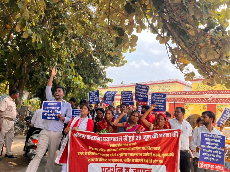 गत 29 जून को करछना में हुए बवाल के बाद पुलिस द्वारा असंवैधानिक व बर्बर ढंग से की गई 70 से अधिक निर्दोष दलित आदिवासी नौजवानों की गिरफ्तारी के बाद उनकी रिहाई को लेकर भाकपा माले के राज्यव्यापी प्रतिरोध के तहत आज प्रयागराज जिला मुख्यालय पर शांतिपूर्ण प्रदर्शन व ज्ञापन का कार्यक्रम आयोजित हुआ.